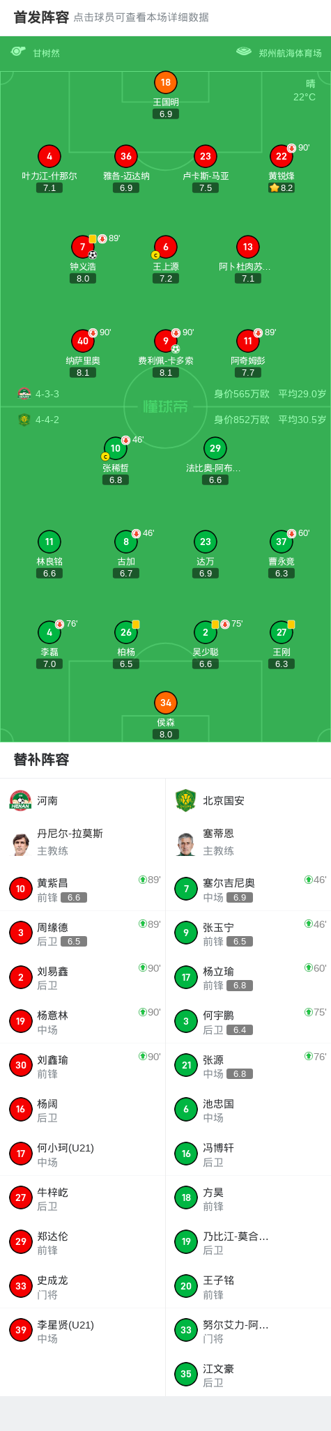 9月12日中超联赛第24轮,河南坐镇主场迎战北京国安。上半场,曹永竞凌空射门击中横梁,法比奥错失机会,钟义浩错失机会后补射破门打破僵局,侯森做出精彩扑救;下半场,张玉宁击中立柱,柏杨送点,卡多索点射锁定胜局。最终,河南主场2-0送国安两连败。